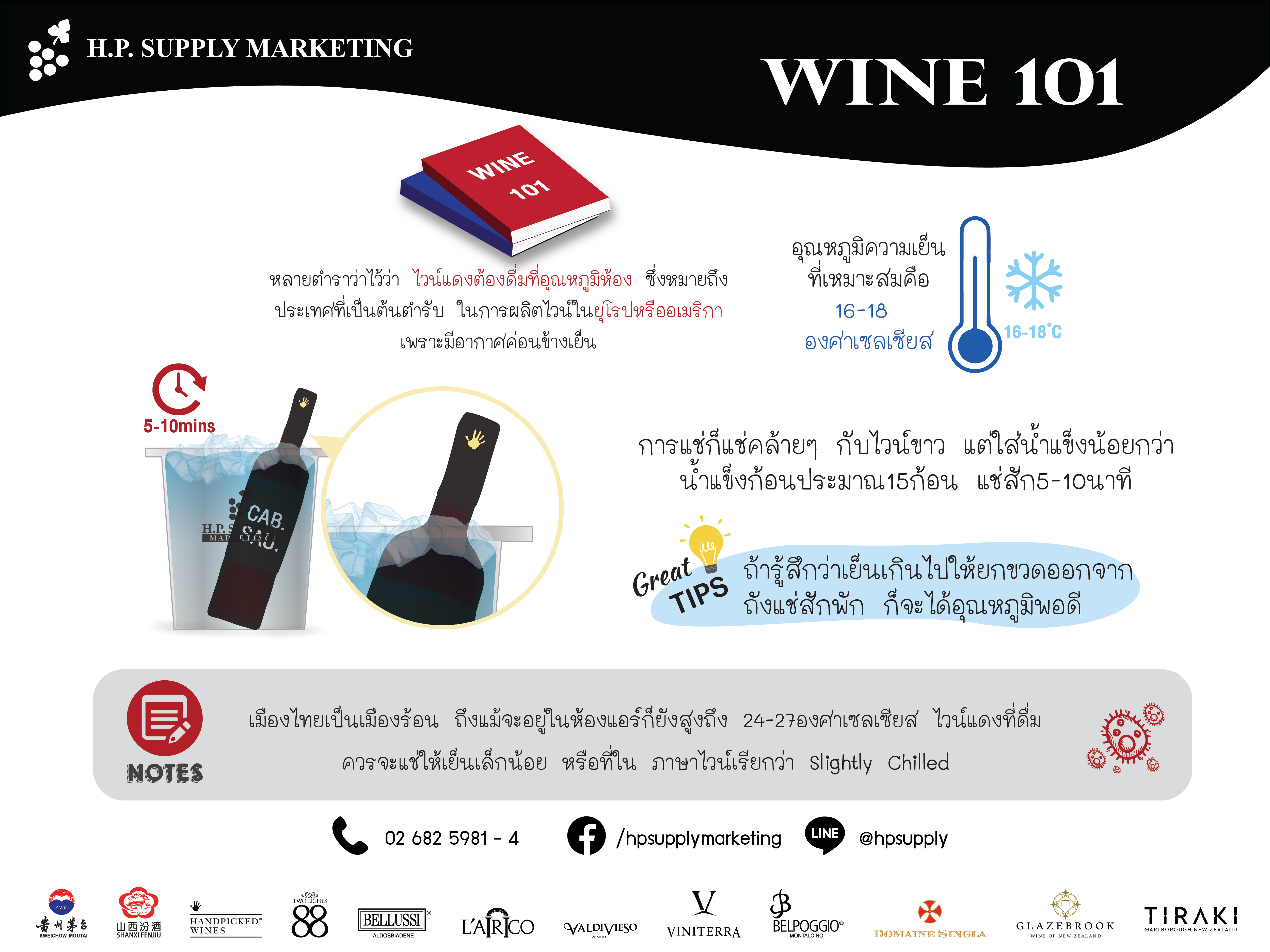 หลายคนอาจจะยังเข้าใจว่าไวน์แดงไม่ต้องดื่มแช่เย็น เพราะตำราบอกไว้ว่า ไวน์แดงต้องดื่มที่อุณหภูมิห้อง หรือRoom temperatureซึ่งเรื่องนี้ทำให้มือใหม่เข้าใจผิดบ่อยๆ